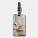 Gepäckanhänger mit einem hübschen Foto eines niedlichen gestopften Bären, stehend von einer rustikalen Holzwand / Kulisse.