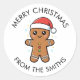 Mit diesem niedlichen, klassischen Rundaufkleber mit einem lächelnden Lebkuchenmann in einer festlichen Weihnachtsmannmütze können Sie Ihren Urlaub überall genießen. Ideal für Weihnachtskarten, Umschläge, Gastgeschenke, Geschenkverpackungen und saisonale Handwerkskunst.