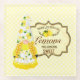 Das süße Design bietet Girl-Gnome mit gemustertem Zitronenkostüm, grenzt an das Schild "Wenn das Leben Ihnen Zitronen gibt, machen Sie etwas Süßes" auf pastellgelben Büffel karierten Hintergrund