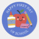Niedlicher glücklicher erster Schultag Runder Aufkleber
