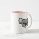 Feiern Sie unsere australischen wild lebenden Tiere mit diesem entzückenden Koalaentwurf! Aufmachung ein Zeichnen eines niedlichen flaumigen grauen Koalagesichtes, das auf einer Zweiton weißen und rosa Tasse lächelt.