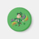 Magnet mit einer Illustration eines niedlichen glücklichen Liedern, der lächelt und tanzt, trägt er einen grünen Anzug und einen Hut und ist umgeben von regenbogenfarbenen Splash. Ein perfektes Design, um den Heiligen Patrick's Day zu feiern, gezeichnet von Radka2D