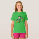 Girls T - Shirt mit einer Illustration eines niedlichen fröhlichen Liedern, der lächelt und tanzt, trägt einen grünen Anzug und einen Tophut und ist von regenbogenfarbenen Splash umgeben. Ein perfektes Design, um den Heiligen Patrick's Day zu feiern, gezeichnet von Radka2D