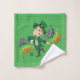 Wash Tuch mit einer Illustration eines niedlichen fröhlichen Liedern, der lächelt und tanzt, trägt er einen grünen Anzug und einen Hut und ist umgeben von regenbogenfarbenen Splash. Ein perfektes Design, um den Heiligen Patrick's Day zu feiern, gezeichnet von Radka2D