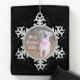 Niedlicher glücklicher Welpenhund mit rosafarbenem Schneeflocken Zinn-Ornament