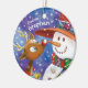 Für Ihren kleinen Gott, geben Sie ein Geschenk von diesem bezaubernden Weihnachtsschmuck Keramik. Es zeigt einen süßen Rentier mit riesigen Augen, der auf einen sehr festlichen Schneemann schaut. Die beiden sind Nase für Nase miteinander. Personalisieren Sie die Vorderseite mit dem Namen Ihres Gottes, und die Rückseite mit Ihrer eigenen speziellen Nachricht.