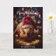 Personalisierter Name oder Meldung. Adorabler Hund mit Weihnachtshut unter dem Baum.