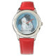 Kinderuhr aus Edelstahl mit rotem Lederarmband