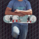 Niedlicher Graue Baby-Pinguin im Winterschnee Skateboard