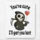 Der sonnige und hübsche Grim-Sensenmann mit romantischem Herzballon sagt: "Du bist niedlich, ich bringe dich als Letzte". Ideal für Valentinstag und Halloween. Für Kinder und Erwachsene.