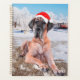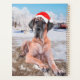 Niedlicher großer Däne Hund sitzend im Schnee Weihnachtshut Geschenktasche.
