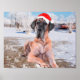 Niedlicher großer Däne Hund sitzend im Schnee Weihnachtshut Poster.