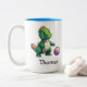 Niedlicher grüner Dinosaurier mit Ostereiern Zweifarbige Tasse