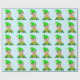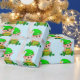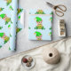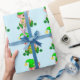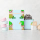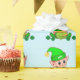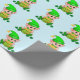 Niedlicher grüner Elf mit einem Goldtopf auf hellb Geschenkpapier