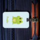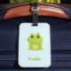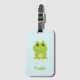 Niedlicher grüner Frosch auf blau Gepäckanhänger