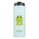 Niedlicher grüner Frosch auf blau Thermosbecher
