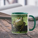 Fügen Sie eine Touch von Natur und Launen zu Ihrem Kaffee, Tee oder Lieblings-Heißgetränk mit dieser Tasse zum Thema Wildtiere hinzu! Einige kleine, grüne, mit Entenkraut bedeckte Frösche wurden in einem Teich vor der Minnekhada Lodge gesehen, aber dieser niedliche kleine Kerl nahm den Kuchen mit seiner unerschöpflichen "Pose auf einem Schlauch". Foto Mitte August 2016. Basierend auf der Originalfotografie von W.H. Sim. Alle Rechte vorbehalten. Weitere Informationen unter zazzle.com/walkswithnature