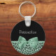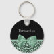 Ein mädchenhaft grün Jaguar Schlüsselanhänger mit einem niedlichen Jadegrün Band in einem hübschen Bogen. Jedes Mädchen, das Mädchen, würde Liebe haben, seinen Namen auf diesem weiblichen Tierdesign personalisiert zu haben. Flachbild, nicht echtes Band.