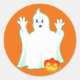 Niedlicher Halloween Ghost & Pumpkin auf Orange Cl Runder Aufkleber