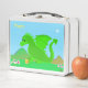 Niedlicher, fröhlicher, grüner Babydrache mit goldenem Ball, Blume & Star Lunch Box. Glücklicher Text kann personalisiert sein.