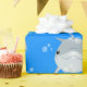 Diese glückliche Flasche Nase Delphin bläst Blasen! Gezeichnet im niedlichen Cartoon-Illustrationsstil auf blauem Hintergrund.