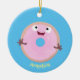Niedlicher Happy-Pink-Glattleder-Donut-Cartoon Keramik Ornament