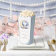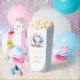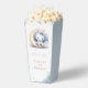 Super niedlicher Pop Mais Gaumen Box mit niedlichem weißen kleinen Hasen in einem schönen blauen Bogen sitzend auf einem schönen Mond mit einigen goldenen Sternen fallen und einige staubige blaue Wolken.