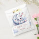 Die niedliche Liebestasche mit niedlichem, weißem Hasen und einem schönen rosa Bug, der auf einem silberfarbenen Halbmond mit einigen goldenen Sternen sitzt.