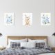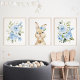 Fügen Sie die Touchs Ihrem Kinderzimmer oder Kinderzimmer mit diesen wunderschönen Kunstdrucken hinzu! Das Design umfasst bunnies, blaue Aquarellfarben und Blume.