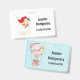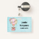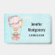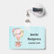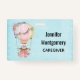 Ein Namensschild mit einem ansprechenden Design mit einer Aquarellbild-Abbildung. Ein Heißluftballon mit hübschen roten und rosa Blume. Ein niedlicher kleiner, weißer Bär sitzt im Korb. Hellblauer Hintergrund im Shabby-Stil.