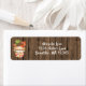 Dieses Herbst-Adressetikett zeichnet sich durch einen niedlichen Kuchen aus, der mit einem Süßenkürbis, Eichen und farbenfrohen Blätter geschmückt ist, die alle auf einem Holzboden aus Imitaten stehen.