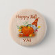 Ein rustikaler niedlicher Herbstknopf mit einem Gnome, der eine Welle hinter einem Kürbis erzeugt. Mit diesem Knopf können Sie Ihre Jacke, Tasche, Flagge, Stuhl, Hüte und vieles mehr schmücken. Sie können die Formulierung ändern, um sie für Sie personalisiert zu machen, wenn Sie möchten.