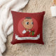 Kopfkissen mit einer Illustration eines niedlich lächelnden Hispanic/Latino-Babys mit einem Weihnachtsgeschenk; in einem roten Kreis auf rotem Hintergrund ein Weihnachtsfeierdesign mit einer bearbeitbaren Textvorlage für Ihren Namen oder Ihre Nachricht.