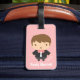 Dieses niedliche Gepäckanhänger eignet sich perfekt für die frisch geflochtenen Flitterwanderer. Diese Hälfte des Designs zeigt den Bräutigam in seinem scharfen und schicken Tuxedo mit einer rosa Bug-Krawatte. Der Text lautet Groom. Achten Sie auf das passende Design für die Braut. Die Hintergrundfarbe kann im Anpassungsmodus geändert werden.