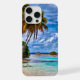 Schöner, hellblauer Sommerhimmel über einem türkisblauen Meer und grünen Palmen und Blättern auf einem hawaiianischen Strand. Das verzierte, elegante und funky Hipster Design wurde für die Liebhaber von Flora und Fauna, Hawaii, Stränden und Sand, Urlaub, Reisen in exotische Orte und Länder der Welt geschaffen. Schönes, modernes und cooles Cover für den Trend-geschickten und kunstliebenden angesagten Trendsetter, künstlerischer Motif-Liebhaber, der will, ihr Handy vor Staub und Schmutz, Abnutzung und Tränen zu schützen. Dieses Design ist für Apple iPhone 6, 7, 8, 10 oder X, XR, XS, 11, 12, 13 Mini 14, 15 Plus und Pro Max Handy Hüllen erhältlich. Zeigen Sie Ihren Stil, sehen Sie in der Mode und fühlen Sie sich stilvoll mit einem einzigartigen Design auf einem mobilen Zubehör Ihrer Wahl.