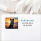 Ein Hund sitzt bei Sonnenuntergang ai art am Strand. Niedliche Hunde Rücksendeadressen-Aufkleber.