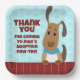 Neue Haustiereltern können für diese neueste (vierbeinige) Ergänzung der Adoption ein bezauberndes Party werfen, und diese skurrilen Teller, in einer lustigen, einnehmenden Schrift gestylt und mit einem niedlichen und neugierigen Jungen über dem Zaun stehend, um zu sehen, worum es beim Aufprall geht, mit glühenden Papieren im blass blauen Himmel. Eine schöne Art, den Gästen zu danken, dass sie gekommen sind! Weitere Informationen unter zazzle.com/expressionsoccasions