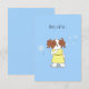 Auf dieser Karte befindet sich ein niedlicher Cartoon eines braunen und weißen Hundes mit einem gelben Kleid. Der Hund hält einen Löwenzahn und bläst überall Löwenzwiebeln, um ihren Wunsch zu erfüllen. Die Abbildung ist Set vor einem hellblauen Hintergrund. Auf dieser niedlichen Karte steht "MAKE A WISH...", aber Sie können dies mit Ihrer eigenen Nachricht anpassen. Dies würde eine niedliche und einzigartige Geburtstagskarte, denken Sie an Ihre Karte, oder danke Karte.