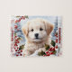 Niedliches Puzzle mit einem bezaubernden Hund Golden Retriever Welpe im Winter Christmassy Szenerie. Ein niedliches personalisiertes kleine Geschenk oder Geburtstagsgeschenk für Kinder und alle Hundefreunde. Es kommt mit einem Karton-Handkoffer mit einem Puzzlebild auf dem Deckel! Personalisieren Sie den Text einfach oder verließ ihn leer. Kate Eden Art