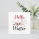 Eine niedliche Eis Skaten Hund Illustration und die Worte: Hallo Winter.