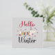 Eine niedliche Eis Skaten Hund Illustration und die Worte: Hallo Winter.