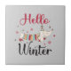 Eine niedliche Eis Skaten Hund Illustration und die Worte: Hallo Winter.