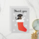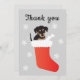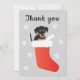 Niedlicher Hund in einem Strumpf Schneeflocken Dankeskarte