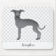 Desteis originelle Cartoon-Illustration einer niedlichen blauen Farbe Italienische Windhund / Iggy Rasse Hund. Der Hintergrund weist ein Muster grauer Hundepfoten auf. Es gibt auch einen personalisierbaren Textbereich für einen Namen.