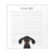 Dackel Lover's Notizen. Hübscher, langhaariger Schwarz-Bein-Dackel-Welpe. Text kann mit Ihrem Namen oder Slogan personalisiert werden. Niedlich ausgekleidete Notizblöcke für Arbeit, Aufgabenlisten, Schulen und Lebensmittelgeschäfte. Das ist ein lustiges Geschenk für ein Familienmitglied, das Dackel-Hunde Lieben. In mehr Papierfarben erhältlich.