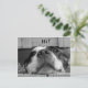 Dies ist eine niedliche Hundescharte, die an einen Freund oder einen Liebsten geschickt wird, um ihnen lassen, dass du über sie nachgedacht hast. Diese Postkarte hat ein niedliches Schwarz-Weiß-Bild eines Hundes Peeking und Sprichwort Hi!