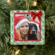 Fügen Sie Ihr Lieblings-Foto Ihres Haustieres oder Sie und Ihren Hund oder Ihre Katze in den Schmuck im personalisierten Bereich. Grüner Rahmen mit Pfotendruck und rotem Bogen.