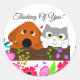 Niedlicher Hund und Katze mit Blume und Schmetterl Runder Aufkleber