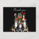 Diese Dankeschön-Karte zeigt eine lustige, festliche Darstellung einer Gruppe von sechs Hunden, die im Urlaubskleid verkleidet sind. Jeder Hund hat sein eigenes Weihnachtszubehör: Weihnachtsmannmützen, Rentieranhänger, Schal, Urlaubsleuchten und sogar spielerische Gläser, die wie Weihnachtsbäume geformt sind. Die fröhlichen Ausdrucksformen und die Dekorationen der Ferienhunde spiegeln den fröhlichen Geist der Saison wieder und machen diese Karte zum idealen Ausdruck von Dankbarkeit mit einer Touch von Spaß und Charme. Ideal für Hundefreunde, diese Karte bringt ein warmes und festliches Ambiente zu jedem Urlaub, danke Ihnen.