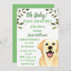 Oh, Baby! Niedliche Labrador-Hunde-Illustration Baby Girl oder Junge, geschlechtsneutrale Babydusche Einladung. Babyparty. Rustikales, welpenfarbenes Bild von Monika Howarth. Natur, grüne Illustration Baby Dusche Einladung. Personalisieren Sie es mit Ihren Daten.